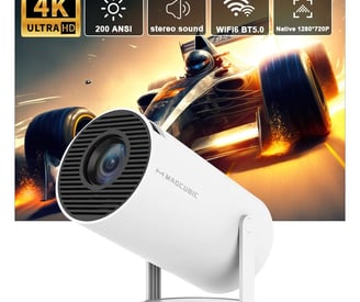 The Magcubic HY300 is a portable HD projector with Android TV 11 built-in and 200 ANSI lumens. It's a great option for cinema at home or on the go.